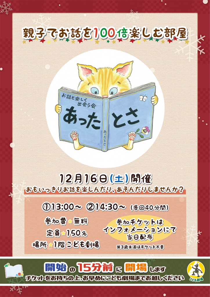 劇場ワークショップ 【開催終了】劇場ワークショップ|12月16日(土)「親子でお話を100倍楽しむ部屋」 2023.11.17 【開催終了】劇場ワークショップ|12月17日(日)「ミュージッククラブ♪ミニミニコンサート」 前の記事 【開催終了】劇場ワークショップ|12月10日(日)演劇「サンタランドの発明家」 次の記事