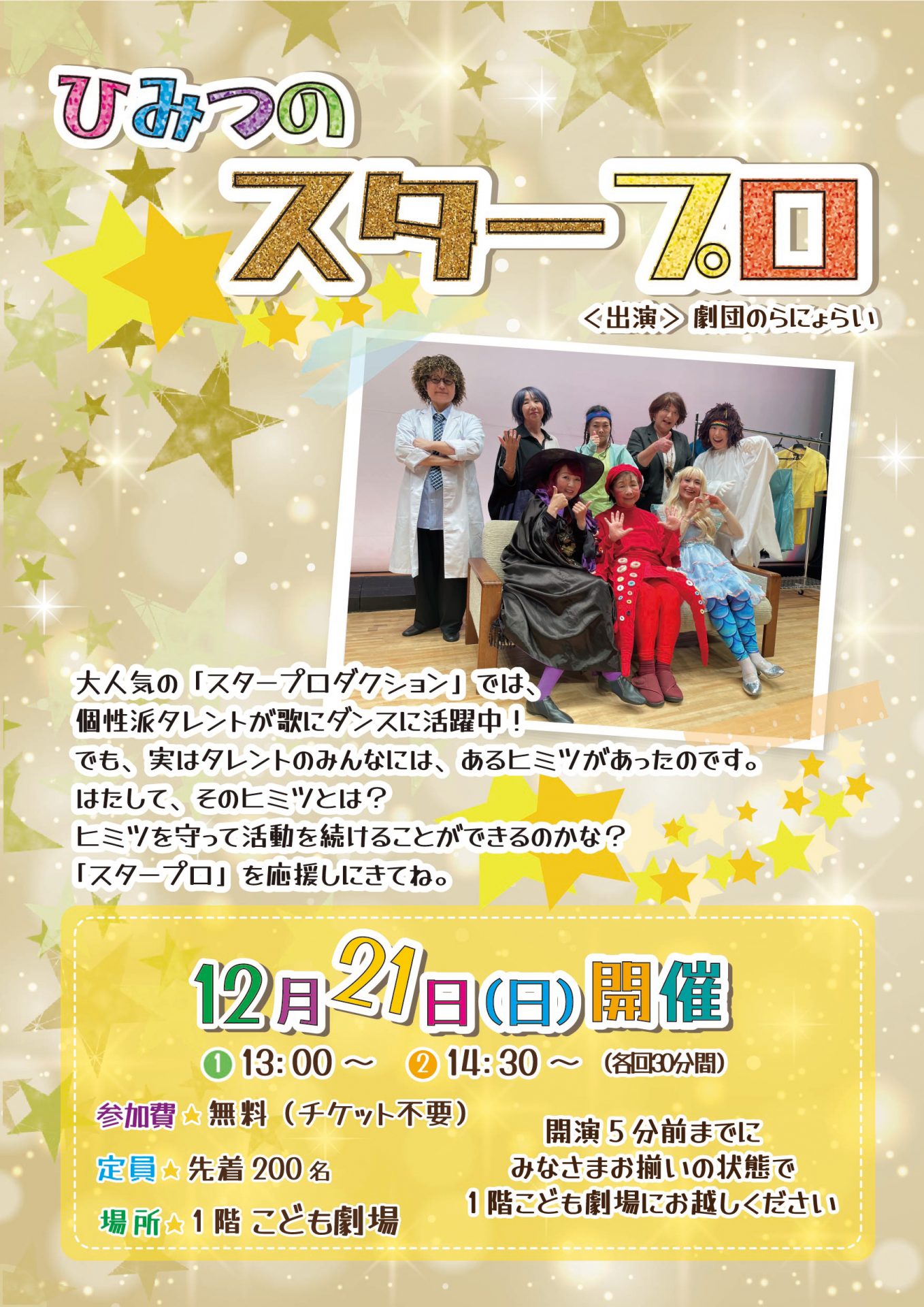 劇場ワークショップ 劇場ワークショップ|2025年12月21日(日) 「演劇/ひみつのスタープロ」 2025.11.21 【開催終了】劇場ワークショップ|2025年11月30日(日)「ちょっと夢工房」 前の記事 劇場ワークショップ|2025年12月14日(日) 「サンタクロースがやってくる!」 次の記事