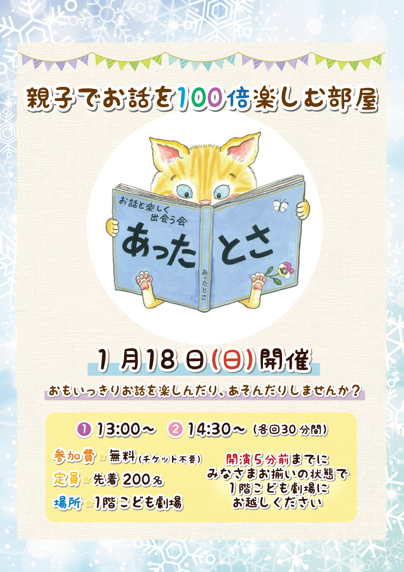 劇場ワークショップ 劇場ワークショップ|2026年1月18日(日) 「親子でお話を100倍楽しむ部屋」 2025.12.16 劇場ワークショップ|2026年1月25日(日) 「影絵劇/こびととくつや」 前の記事 【開催終了】スペースキッチン|2025年12月21日(日) 昔懐かしい飴細工体験 次の記事