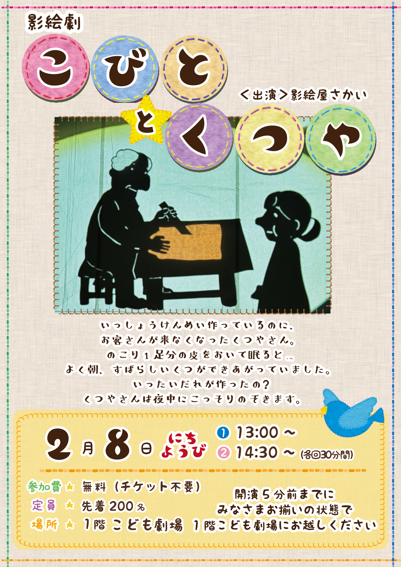 劇場ワークショップ 劇場ワークショップ|2026年2月8日(日) 「影絵劇/こびととくつや」 2026.01.31 スペースキッチン|2026年2月11日(水・祝) 昔懐かしい飴細工体験 前の記事 劇場ワークショップ|2026年2月1日(日) 「演劇/ひみつのスタープロ」 次の記事
