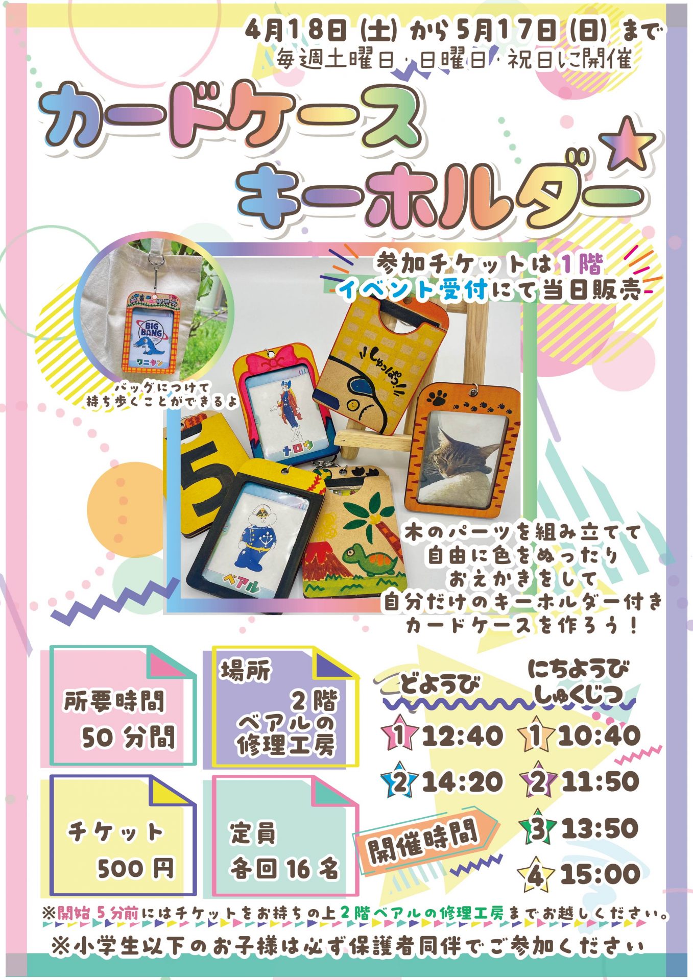 工作ワークショップ 工作ワークショップ|【4月18日~】カードケースキーホルダー 2026.04.09 劇場ワークショップ|2026年5月3日~5日「キッズタウンけんせつ広場」 前の記事 全館企画展2026年4月14日開始!「元気いっぱい!からだ×じぶんトリセツ」 次の記事